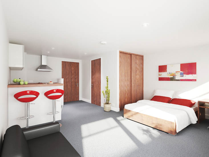New build 75-bedroom, high spec, student accommodation with ground floor retail. Student rooms were naturally ventilated utilising combined service risers/vent shafts and roof mounted wind turbines.